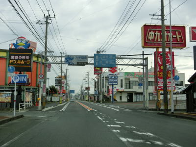 | 45.沿線の建物は少ない | 46.熊本r347開田交差点 | 47.玉名バイパスが終わると道路グレードが落ちる |