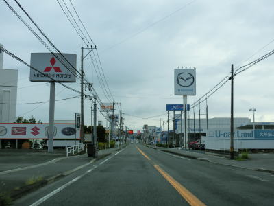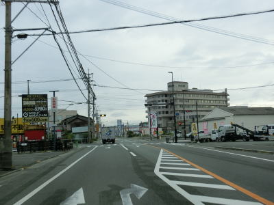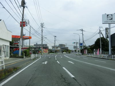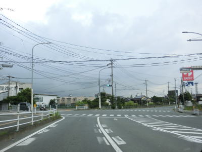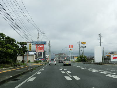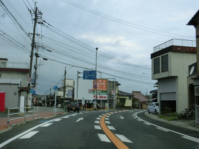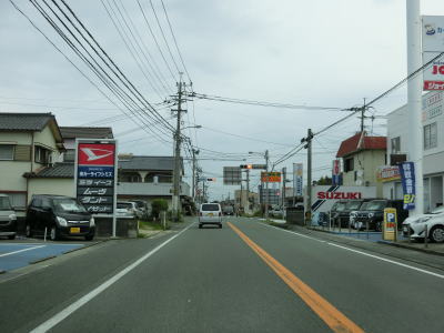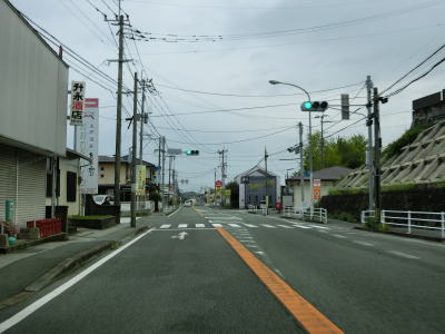 | 92.福岡r18中島郵便局前交差点 | 93.用水路(?)沿いを走る | 94.幹線国道にしては貧弱な道路状況 |