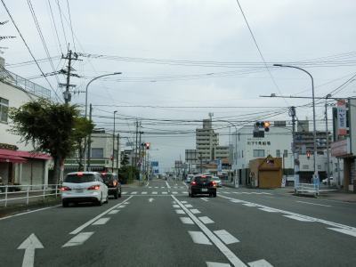 | 74.やや狭苦しい2車線道路を走る | 75.福岡r786草木交差点 | 76.福岡r727銀水駅前交差点 |