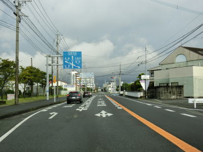 | 福岡r18旧道(?)との交差点のすぐ先でr18中島郵便局前交差点を通過する。r18には有明沿岸道が案内されており、大和北ICと大和南ICに行く事ができる。前者は佐賀方面、後者は大牟田方面とのみ接続しているハーフインターチェンジである。 中島郵便局前交差点からは平坦な直線道路を走る。沿線の家屋は幾分か少なくなっているものの、車線幅に余裕がなく歩道は片側にしかなく狭いため、走りやすいとは言い難い。 |