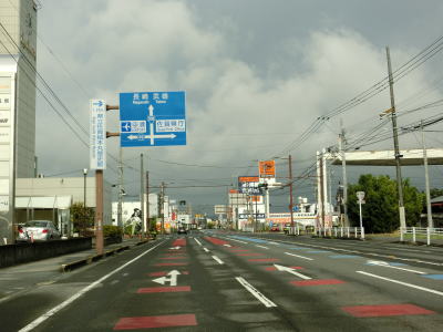 | 103.「佐賀16km 大川7km」 | 104.佐賀・大川方面は右側車線を走る | 105.高畑交差点 |