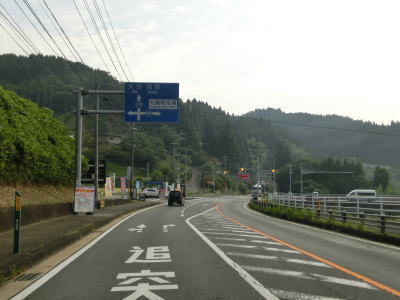 | 登坂車線が終わった先で水分峠を越えて由布市に入る。水分峠自体は九重町と由布市の峠だが、すぐ北に玖珠町域がある。峠を越えてすぐに左にカーブしながら大分r11交差点を通過する。r11のこの区間はやまなみハイウェイと呼ばれており久住高原を経て阿蘇方面に行く事ができる。約250m程先にもr11交差点があるが、こちらは別府市街地まで行けるものの道幅は狭くカーブが非常に多い道路状況である。 | ||