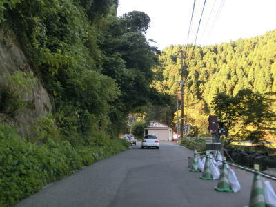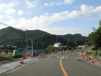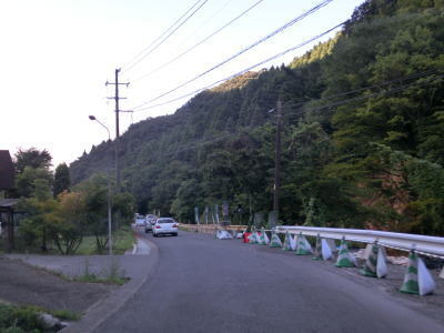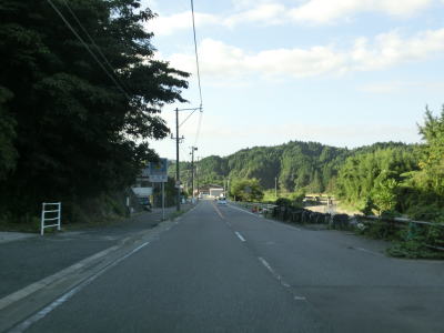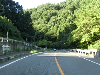 | 大肥川に沿って緩やかな勾配を緩やかなカーブの2車線道路を淡々と走る。黒谷集落付近ではバイパスによって線形が改良されている区間があるが、ウォッちずでは元の道路も国道色に塗られたままである。バイパス区間から程なくして2ヶ所目の被災現場を通過するが、特に通行規制は敷かれていなかった。 | ||