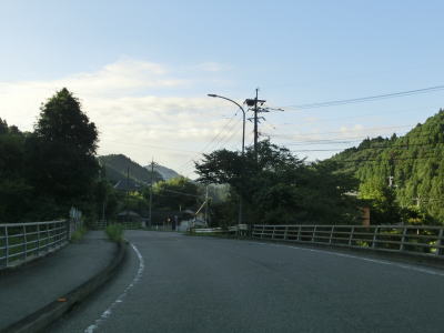 | 大肥川沿いの谷筋を緩やかに下っていると釜床集落を通過する。その後は川面との高低差がなくなり川沿いと言える状態になる。鶴集落では路肩崩落の復旧工事が行われており片側交互通行規制が敷かれていた。 | ||