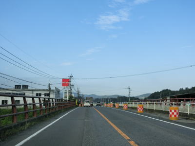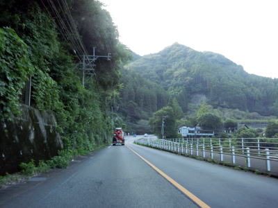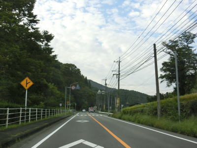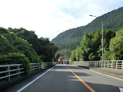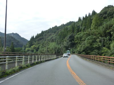 | 片瀬古集落を過ぎると大山川沿いの断崖路となるが、片側だけとは言え歩道も設置されており走りにくさは感じない。左にカーブしながら万々金橋を渡ると旧大山町の中心部に入り、大分r9中川原交差点を通過する。中川原交差点以降は町の中心部だった場所を通っているせいもあって若干狭苦しい2車線道路を走らなければならない。 | ||