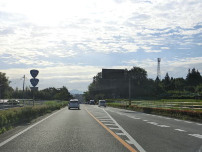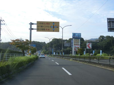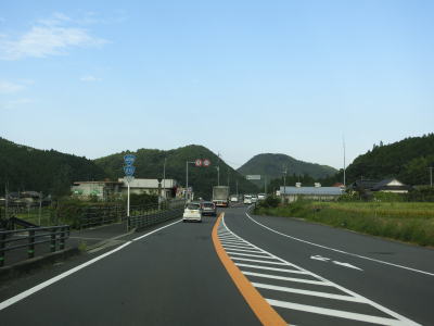 | 奥耶馬トンネルからは日田市に入って緩やかな勾配を下って行く。R212とR496の串刺しおにぎりが設置されているが、中津市側では見られなかったものである。これは管轄する県の土木事務所が異なるためと思われる。反対側車線に登坂車線が設置されてているが、その延長は約2.4kmと結構な長さである。 | ||