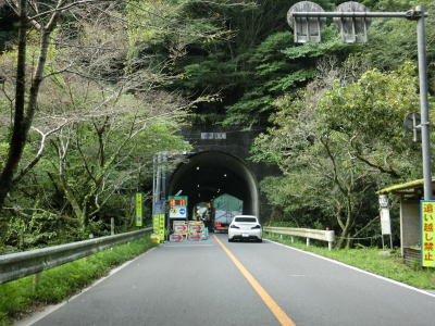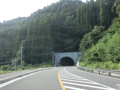 | 上志川大橋を渡り終えた後に登坂車線が現れ、それが終わった直後に奥耶馬トンネルに入る。上志川大橋の北詰で交差している市道へと進むと明治期に掘られた手掘りの大石隧道に行く事ができる。ただしトンネルの前後は廃道状態で車両では進入できず、トンネルそのものも風化によって崩れている箇所があるので安全とは言い難いようである。 | ||