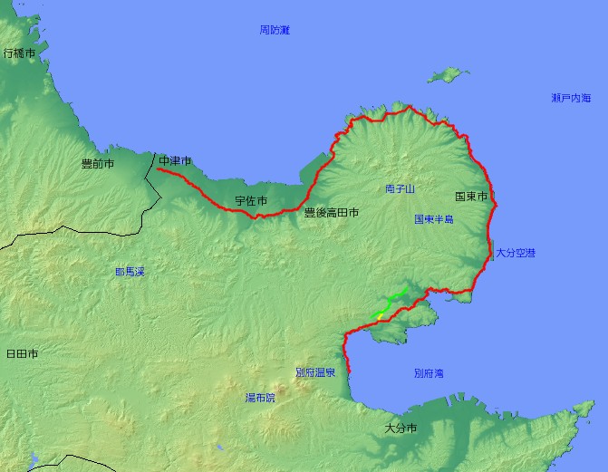 | 主な経由地 | 大分県別府市〜日出町〜杵築市〜国東市〜豊後高田市〜宇佐市〜中津市 |