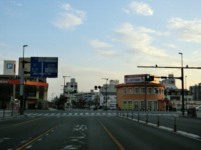 | 大分県大分市の中心部に位置するR10・R57・R197・R210・R442大道入口交差点がR217の起点だが、R197に重複しているため案内標識におにぎりは表記されていない。R10が別府方面と佐伯方面に、R210が日田方面に向かっており、R57はR10佐伯方面に、R442はR210に重複している。R197とR217は終点で、R210とR442は起点である。 大道入口交差点から片側3車線道路となっており県庁所在地の中心部らしい道路状況である。大分駅と商店街を結ぶ歩道橋をくぐった先の寿町1交差点を右折して佐賀関方面に向かう。左折の別府方面にもR197のおにぎりが表記されているが、R10との中春日交差点までの400mの区間がウオッちずでは国道扱いされている。 |