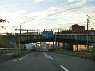 | 片側2車線道路を走っていると緩やかな右カーブを曲がり、鶴羽橋を渡った直後に国道横断公園橋の下を通る。国道を挟んでいる平和市民公園を繋ぐ橋で幅は4車線分ある。国道横断公園橋をくぐってすぐに大分r665乗越交差点を通過する。 | ||