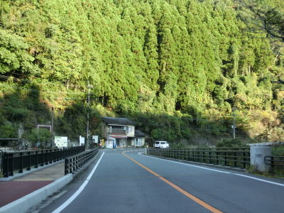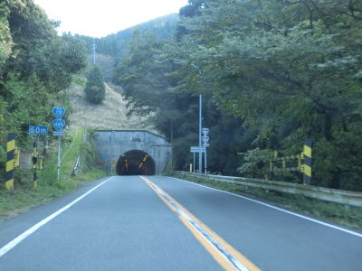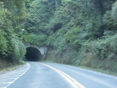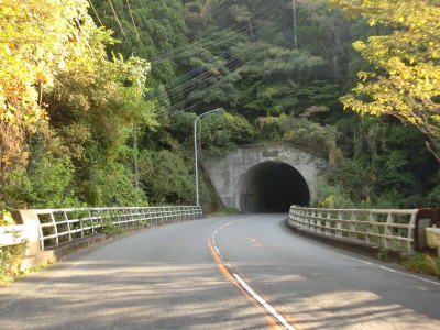 | 閉鎖用ゲートの間を通ってから万坂隧道をくぐって山都町に入る。山都町側にもゲートが設置されており、こちらには広くはないものの転回できるスペースが用意されている。山都町に入ってからは緩やかな勾配を下って行く。 | ||