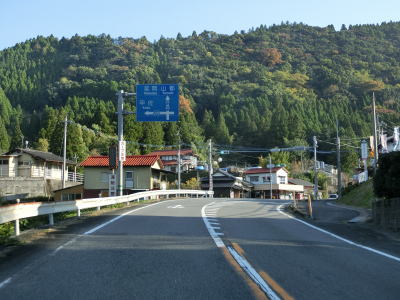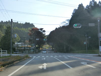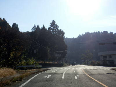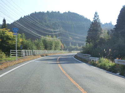 | 南田交差点を過ぎて右カーブを曲がって進行方角を北から東に転じると上司尾橋を渡ってR445上寺交差点を通過する。この交差点でR445が御船方面に分岐するが、御船町を通り過ぎてさらに進むと代継橋交差点に至る。 | ||