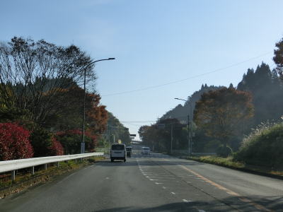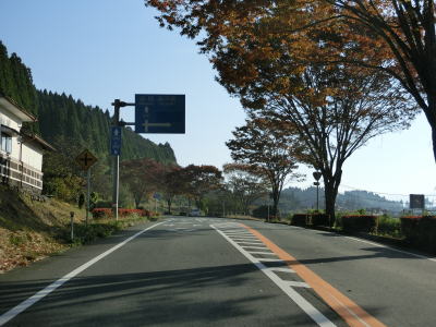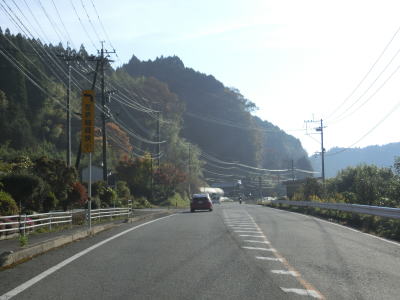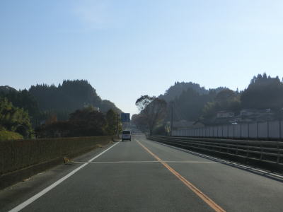 | 緩やかなアップダウンとカーブを繰り返す2車線道路を淡々と走る。場所の割に交通量は多いがハイペースで流れている。通潤橋が国宝に指定された事を祝う懸垂幕が掲げられているが、指定されたのは2023年9月25日と1ヶ月強しか経過していない。山屋隧道をくぐって緩やかな勾配を下っていると熊本r320交差点を通過するとほぼ平坦になる。 | ||