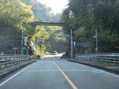 | 霊台橋からは上り勾配となり程なくして船津隧道をくぐる。トンネルの南に船津ダムがあるもののダム湖は小さく、また湖岸を走っている訳ではないので湖面は全く見えない。船津隧道を出た直後には登坂車線が設置されており、それが終わった後に馬入隧道をくぐる。 | ||
