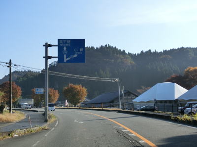 | 下引地橋を渡ってから程なくして旧清和村の中心部に差し掛かる。熊本r153交差点を左にカーブしながら通過する。南側には道の駅「清和文楽邑」があり、主要建物のある敷地と駐車場はr153で隔てられている。 | ||