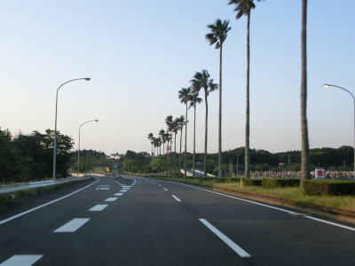 | 青島トンネル以降も上り勾配が続いている。JR日南線を挟んだ海側を走っている宮崎r377が旧道であるが、青島といった観光地があるため行楽シーズンは混雑すると思われる。徳次郎跨線橋で日南線の上を、赤坂高架橋でr377の上と通ってから交差点を通過する。 | ||