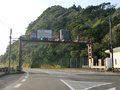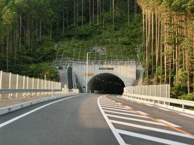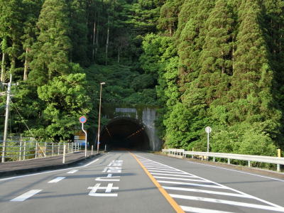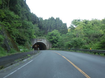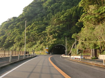 | 異常気象時通行規制区間に入ってからも走りやすい2車線道路が続いている。国道の旧道にして現在は宮崎r433となっている道路との交差点を通過した直後に新鵜戸トンネルをくぐる。r433に鵜戸隧道があり、県道に指定されている事からも分かるが通行可能である。 | ||