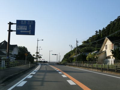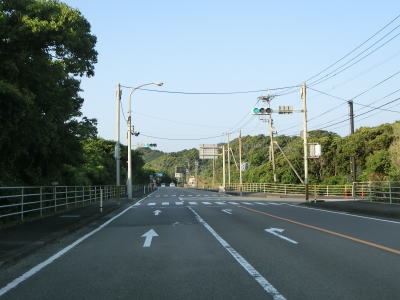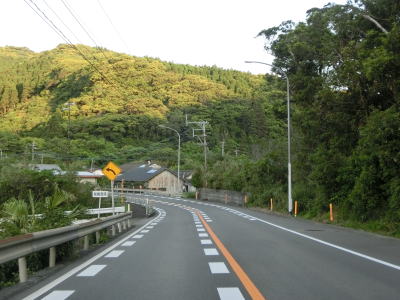 | 新鵜戸トンネルを出て集落内を走っていると旧道と交差するが、南側は県道ではなく市道になっている。その後は川の河口にある集落をいくつか通過しながら海岸線沿いを快走する。カーブは多いものの勾配はほとんどなく、交通量もさほど多くない。 | ||
