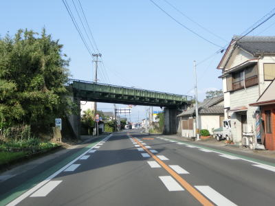 | 菱田橋を渡った直後に30m程度だけ大崎町域を通っているが、距離が短すぎるため境標識は設置されていない。その後250m程進むと正式に(?)大崎町に入り、すぐ先の交差点を通過するとR448が分岐して単独区間となる。串間駅前交差点からの距離は約21kmであり、宮崎市〜日南市の重複区間を含めると70kmも重複している事になる。 | ||