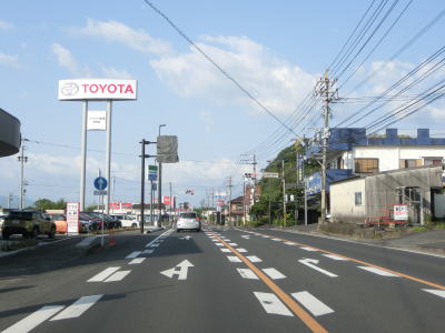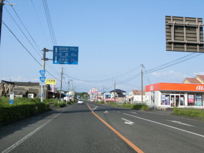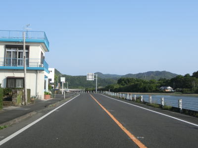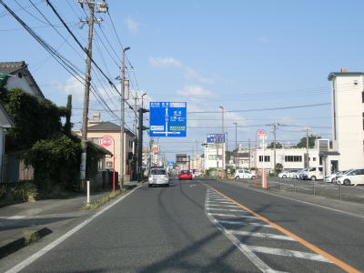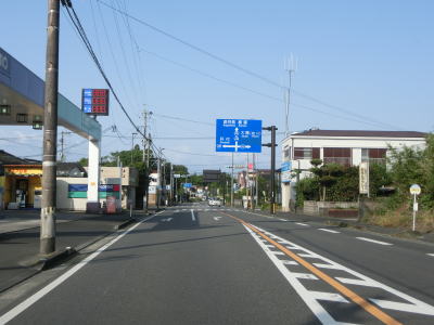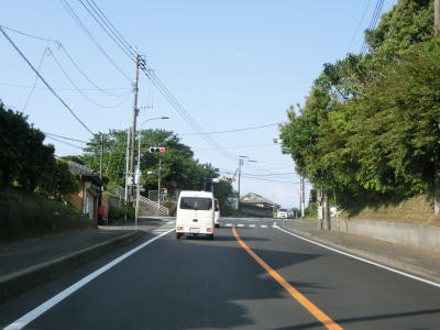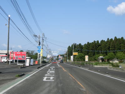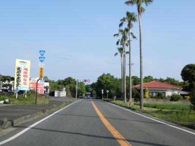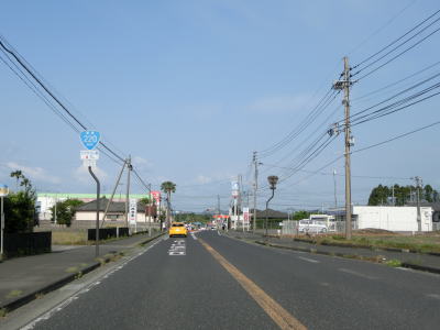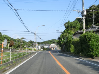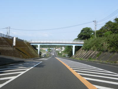 | 甫木川を渡ってからは上り勾配となり、平坦になって以降はほぼ真西の方角に向かって直線道路を走る。アップダウンはあるもののカーブがないため走りやすい。風景が長閑な割に交通量は多い。もっとも信号機付きの交差点が少ないため渋滞が発生するような事態には至らないだろう。 | ||