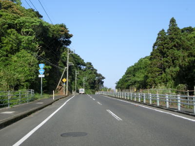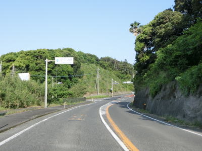 | 緩やかな左カーブで善田川から離れて、福島今町駅からはJR日南線に沿って直線的な2車線道路を走る。概ね海に沿っている場所を通っているが、意外にアップダウンしている。福島高松駅付近を通過し、少し線路と距離を取って高松集落を通過する。 | ||