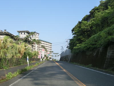 | JR日南線に隣接した状態を走っていると高松トンネルをくぐる。海沿いを走る旧道は入口で閉鎖されており通行できない。イルカランドという海の駅の前を通過してすぐに県境を越えて鹿児島県志布志市に入り、程なくして大黒リゾートホテルを通過する。イルカランドも大黒リゾートホテルも志布志湾を望む事ができる。 | ||