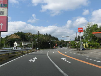 | 単独区間になってからも2車線道路で非常に走りやすい。緩やかな勾配を上っているとイオン錦店の出入口の道路との交差点を通過するが、この交差点から南は人吉市である。R221において錦町域を走っているのはR219交差点前後の1.2km程の距離である。 2回目の人吉市も走りやすい2車線快走路が続いている。カーブも勾配も緩やかである。東間下町交差点から約5.4kmで熊本r102と交差する。r102での距離は約5.3kmと現在のR221の距離とほとんど変わらない。 |