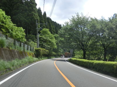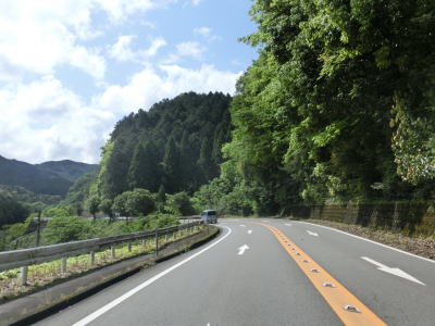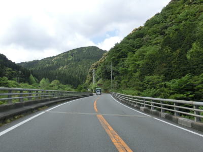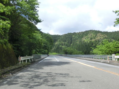 | 旧道と合流してからも走りやすい2車線道路が続いている。勾配は上りだが非常に緩やかであり、車両で走っている分にはほとんど気にならない。熊本r189・r265大畑町交差点付近にはやや急なカーブがあるが特に走りにくいと感じるものではない。集落が途切れると鳩胸川の流域を南下する。 | ||