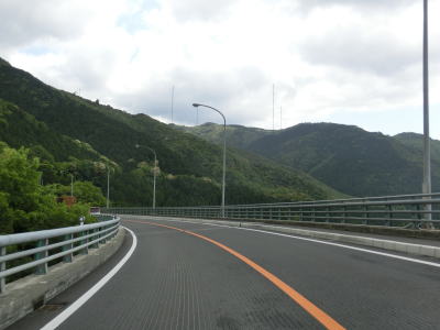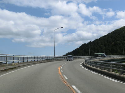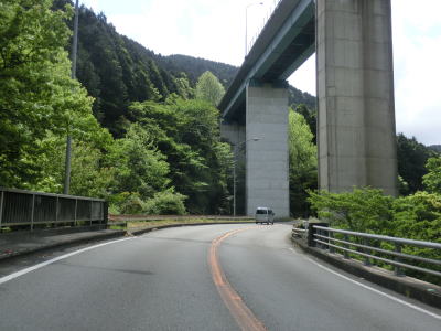 | 右にカーブしながら昇雲橋を走る。ループの上部分のため眺望は良いが橋上のため駐停車してじっくり眺める訳にはいかない。昇雲橋を渡り終えると登坂車線が現れ、天馬橋を渡る。その後も登坂車線が続いているが、久助谷沿いになる辺りで対面2車線になる。 | ||