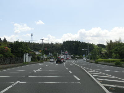 | R268が熊本県水俣市と宮崎県宮崎市とを結ぶ東西の幹線国道のため、交通量はR221に劣らない。信号付きの交差点が少ないため渋滞こそ発生していないが、流れはあまり良くない。八幡丘公園の北で登坂車線が現れるが、勾配が緩やか事からどちらかと言えば譲り車線の機能の方が主だろうか。登坂車線が終わってからは2車線道路になるが、勾配もカーブも緩やかな状態が続く。 | ||