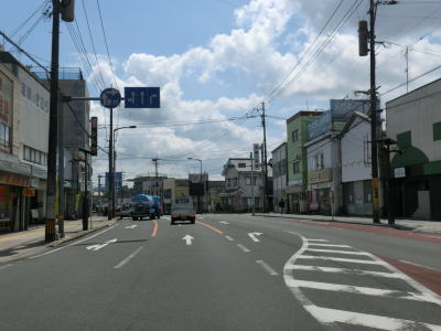 | 市街地の真っただ中の2車線道路走っていると宮崎r53小林商工会議所交差点を通過した先で再び車線が増えて4車線になる。小林駅の北東でR265・R268本町交差点を通過する。この本町交差点は九州一の酷道として名高いR265の起点である。 | ||
