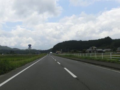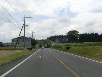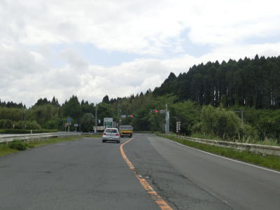 | 高原ICを過ぎると沿線の建物が少なくなる。緩やかな勾配を下っているとJR吉都線のガードをくぐり、沿線の家屋と水田が途切れた所で市町境を越えて都城市に入り、すぐ先で九州道の高架下をくぐる。さらにその先で旧道と思われる市道との交差点を通過し、水田の間を見通しの良い直線道路で走り抜ける。右カーブを曲がると旧道と合流するが、以降も走りやすい2車線道路である。 | ||