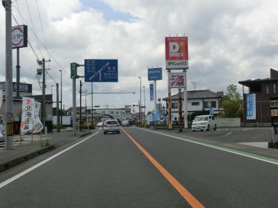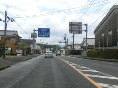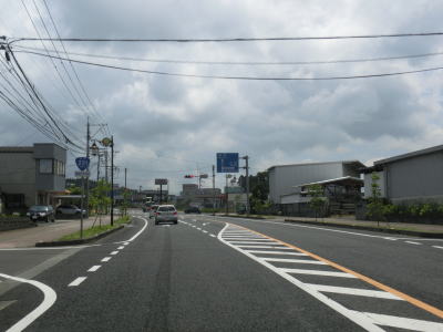 | 宮崎道の下をくぐってからは徐々に沿線の建物が増えてくる。一般の家屋よりも小規模な商業施設や町工場が多い感じである。やや交通量の多い直線道路を走っているとR10松之元交差点に突き当たる。都城市の市街地からは離れているが、この松之元交差点がR221の終点である。起点の東間下町交差点同様に位置的にやや中途半端と言える。 | ||