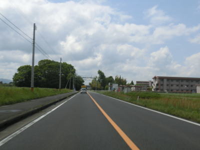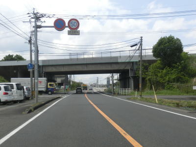 | 高崎川に架かる栢木橋を渡り、JR吉都線に沿った緩やかなアップダウンとカーブの快走路を走る。旧高崎町の中心部に入ると沿線に家屋が密集しており歩道がないため、これまでに比べてしまうと少し走りにくさを感じる。宮崎r42との高崎総合支所入口交差点付近は改良工事が終わったようで歩道があるうえに路側帯も比較的広い2車線道路となっている。 | ||