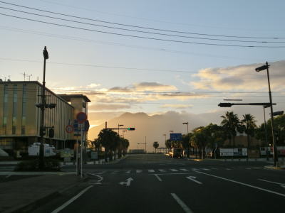 | 左にカーブした後にやや急な勾配を下っていると電光掲示板付きの閉鎖用ゲートを通過し、直後に市境を越えて垂水市に入る。さらにその直後にR220桜島口交差点に至る。全長14.0kmのR224のうち、垂水市域を通っている距離は100mに満たない。直進のR220に鹿児島市と案内されているが、これは鹿児島湾を迂回するルートであり、その距離は60kmを超えている。また、案内標識には表記されてないが、垂水市の中心部は右折のR220日南・鹿屋方面を走った先にある。ちなみに桜島は元々“島”であり、現在のように大隅半島と陸続きになったのは1914年の大正噴火の際であり、100年程度しか経っていない。 | ||