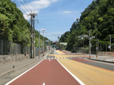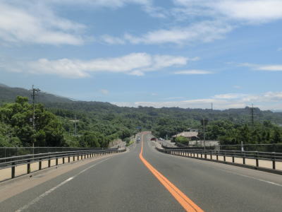 | 緩やかな勾配を上っていると桜島国際火山砂防センターの前を通過し、野尻橋と春松橋を相次いで渡る。野尻川、春松川は枯れ川のように見えるが、おそらく土石流の発生時に土石流を流す目的もあると思われる。春松橋からはS字状にカーブしながら勾配を下って野尻町集落の北部から西部を通過する。 | ||