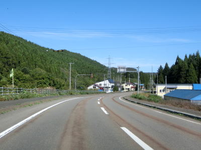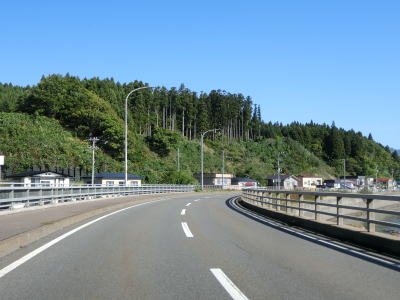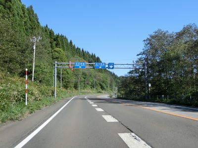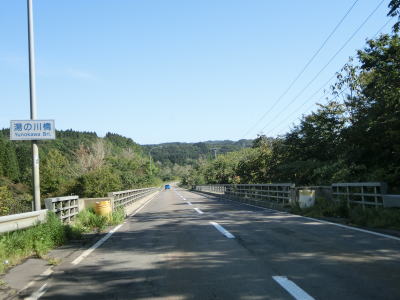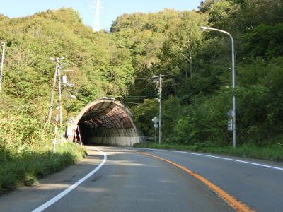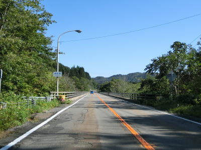 | 福島トンネルを出ると4%の勾配を下る。カーブも緩やかで峠道としては非常に走りやすい道路状況と言える。谷筋で抜けると市の渡橋で知内川を渡り、千軒集落を通り抜ける。 | ||