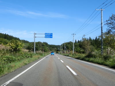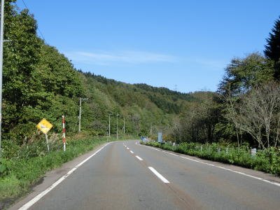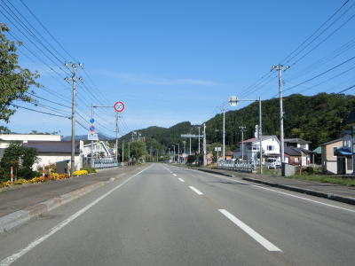 | 蛇行している知内川の西側を線形の良い下り勾配の2車線道路で走っていると北海道r812交差点を通過する。r812は路線名を館町福島線と言い、厚沢部町字館町とを結んでいるが、間に分断区間が2ヶ所ある。それを繋げる計画があり工事も行われていたが、既に中止が決定しておりこの先も分断が解消する事はないだろう。そのr812との交差点を通過して少し走ると知内町に入る。 | ||