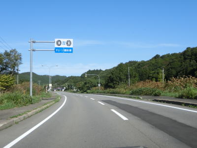 | 97.綱配橋 | 98.「函館60km 知内13km」 | 99.知内町に入る |