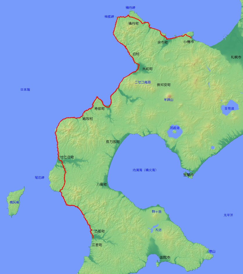 | 主な経由地 | 北海道小樽市〜余市町〜積丹町〜せたな町〜八雲町〜乙部町〜江差町 |