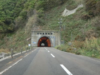 | 緩やかな勾配を上っていると桧山トンネルをくぐる。このトンネルにはどちら側の坑口にもスノーシェッドが繋がっている。桧山トンネルからは旧北檜山町域に入り、緩やかな勾配を下って行く。 | ||