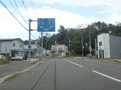 | 二股川に架かる東雲橋を渡り、緩やかな上りと下りを通過した後に北海道r42交差点を通過する。r42は渡島半島を縦断しており、内浦湾沿いのR5に行く事ができる。常盤橋で二俣川を渡った先で町道が交差している右カーブを曲がる。以前はT字形状だったものが改良されてカーブになったものと推測される。 | ||