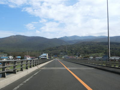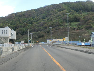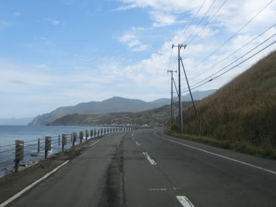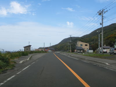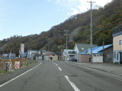 | 北海道r836交差点の直後に泊川橋を渡って島牧村の中心部を通行する。村役場はもちろん郵便局や診療所、ガソリンスタンドなどもあるが、集落の規模としては決して大きくなくすぐに通り抜けてしまう。村の中心部を過ぎても集落が途切れずに続いており、ホンベツ川に架かる小川橋を渡る。海寄りにはホンベツ川防潮水門がある。その後も海に沿った集落の中を走っていると大平トンネルをくぐる。 | ||