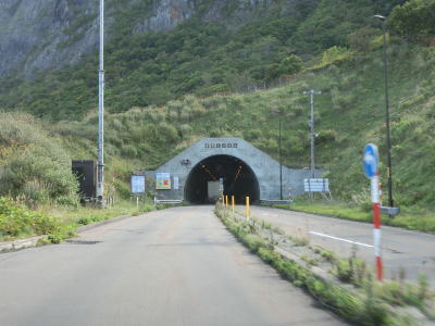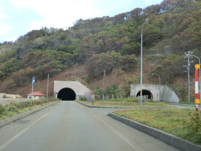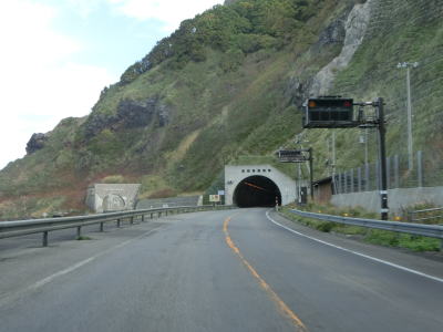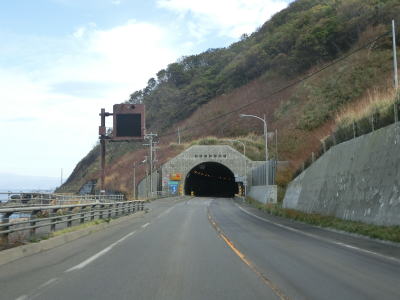 | 雷電温泉の一軒宿に至る町道との交差点の直後に弁慶トンネルに入る。海に沿っている道路が旧道だが、これまでの旧道区間と異なりトンネルはなかったようである。弁慶トンネルを出ると中央分離帯が現れ、大きく右にカーブした後に雷電トンネルに入る。トンネルの手前には敷島内風の駐車場があり、その奥に延びる道路が旧道である。なお、雷電トンネルの全長は3570mで、トンネルが多いR229において最も長い。 | ||