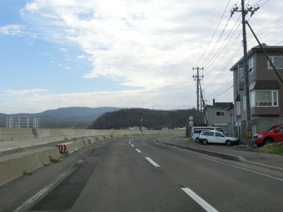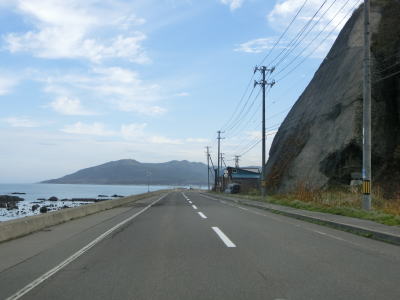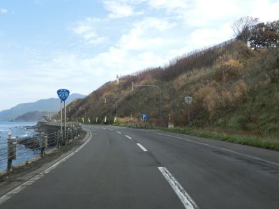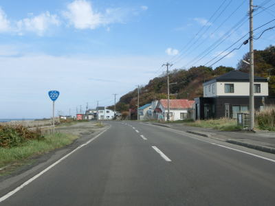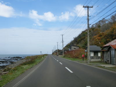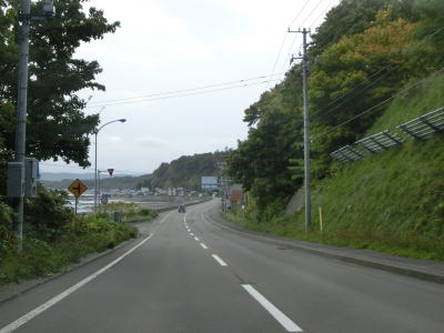 | 断続的に続く家屋を結びながら海沿いの2車線道路を走っていると種前トンネルをくぐる。その後も沿線の家屋が途切れる事なく続いている。せたな町や島牧村の海沿い区間に比べて穏やかな地形で絶壁を走っている感じではない。 | ||