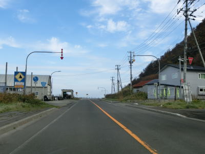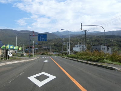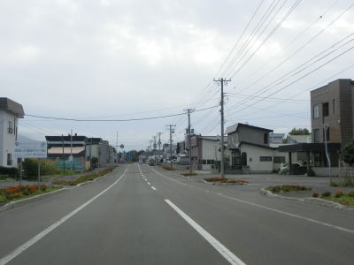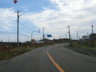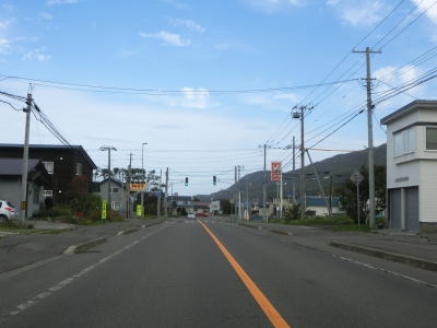 | 緩やかな勾配を下っていると北海道r272交差点を通過する。r272は国道よりも海寄りを通っており旧道のようなルートだが、停車場線として認定された道道である。下り勾配が終わる前に沿線の建物が増えて寿都町の中心部と言える場所に入る。町の中心部も路側帯が広く取られており走りやすい。 | ||