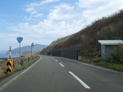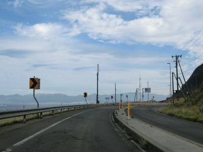 | 165.弁慶岬 | 166.弁慶岬の直後には防雪柵あり | 167.寿都湾が見える |