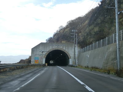 | 前方に見えていた急峻な岩肌に近付くと磯谷トンネルに入る。左側の海寄りには旧道が確認できるが、旧トンネルは閉塞されており、その手前のスペースが資材置き場として利用されている。磯谷トンネルと旧トンネルの全長は同じくらいだが、それでも新たにトンネルが造られたのはおそらく幅の問題ではなかろうか。 磯谷トンネルを出て小さな沢を渡ると次の刀掛トンネルをくぐって岩内町に入る。このトンネルの旧道も海寄りを通っており、閉塞されたイセバチトンネルがよく見える。全長2754mの刀掛トンネルを出ると旧道と合流するが、こちら側も閉鎖されており旧道との往来は不可能である。北側の坑口のすぐ傍に旧弁慶トンネルがあるが、閉塞されているのが確認できる。 雷電温泉のホテル(廃業している?)の前を通過してカスペトンネルに入る。このトンネルの前後にも海沿いの旧道が接続しているが、閉鎖されているため通行できない。南側の旧道入口付近は簡易駐車スペースとして開放されている。 |