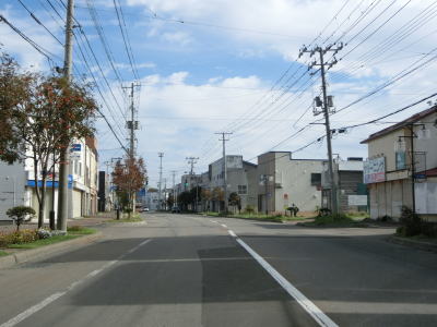 | 家屋が点在する敷島内集落を走っていると徐々に家屋が多くなっていく。野東川に架かる岩野橋を渡ると沿線には家屋が密集するようになり、岩内町の中心部に入った事が分かる。交通量も増えているが、一般的に言えば少ないと言える範疇である。 | ||