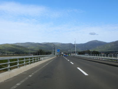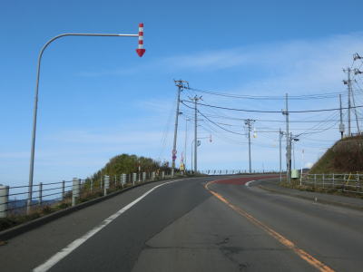 | 堀株川に架かる鎧橋を渡ってすぐに北海道r569交差点を通過して左カーブを曲がる。カーブ部分は中央分離帯が設置されており、追越しができなくなっている。カーブが終われば通常の対面2車線道路に戻る。 | ||